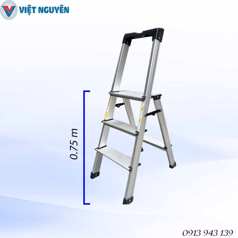 Thang nhôm ghế 3 bậc với độ cao 0.75m, sử dụng thích hợp với nhiều công việc trong gia đình.